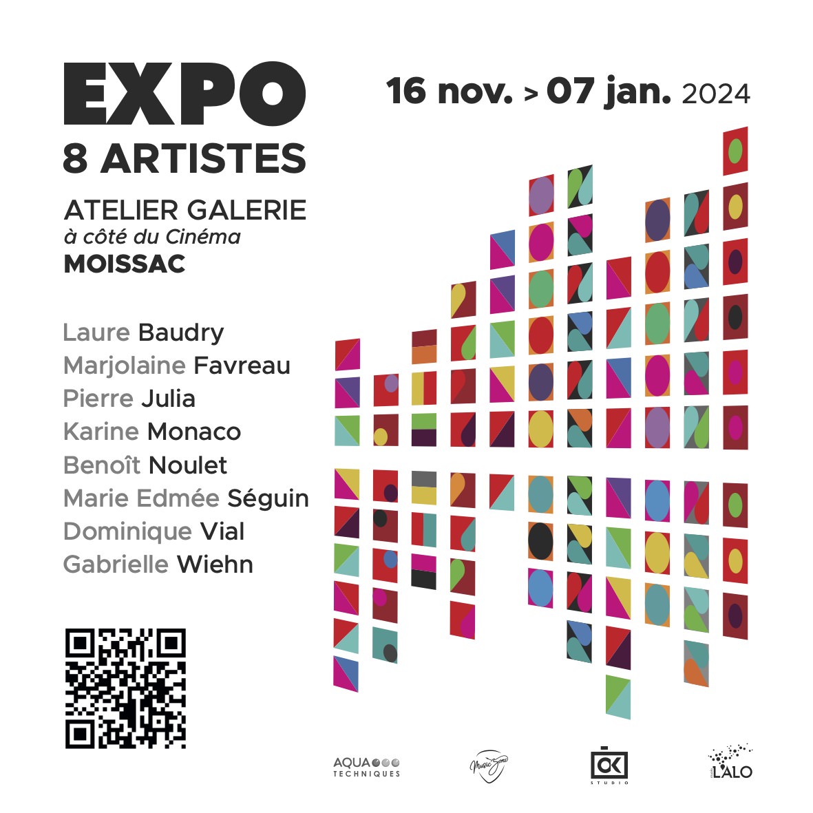 Exposition de peintures abstraites au format 10x10 cm par 8 artistes.